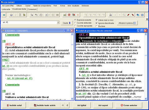 Coduri comentate este creat după aceleaşi principii şi oferă aceleaşi facilităţi ca şi celelalte module ale produsului LEX EXERT.