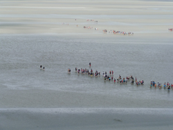 De îndată, cei curajoşi pornesc în explorarea teritoriului cu mâl, nisip şi apă, pe care oceanul tocmai l-a eliberat. Chiar dacă această aventură presupune un anume risc, imediat ce începe refluxul, poţi vedea sute de oameni care hoinăresc, de obicei grupaţi în şiruri, în golful ce aşteaptă să fie recucerit de ape.