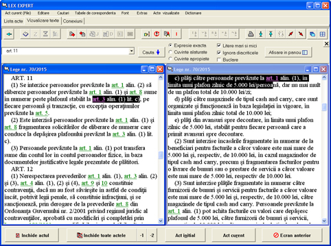 Pot fi vizualizate mai multe acte simultan pe ecran.