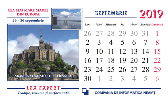 Calendarul LEX EXPERT din anul 2019 a fost gândit de noi, echipa LEX EXPERT, ca o invitaţie în lumea evenimentelor strălucitoare. Au fost înmănuncheate în filele sale fenomene naturale impresionante şi sărbători îndrăgite, cărora timpul le-a conferit o aură de legendă.